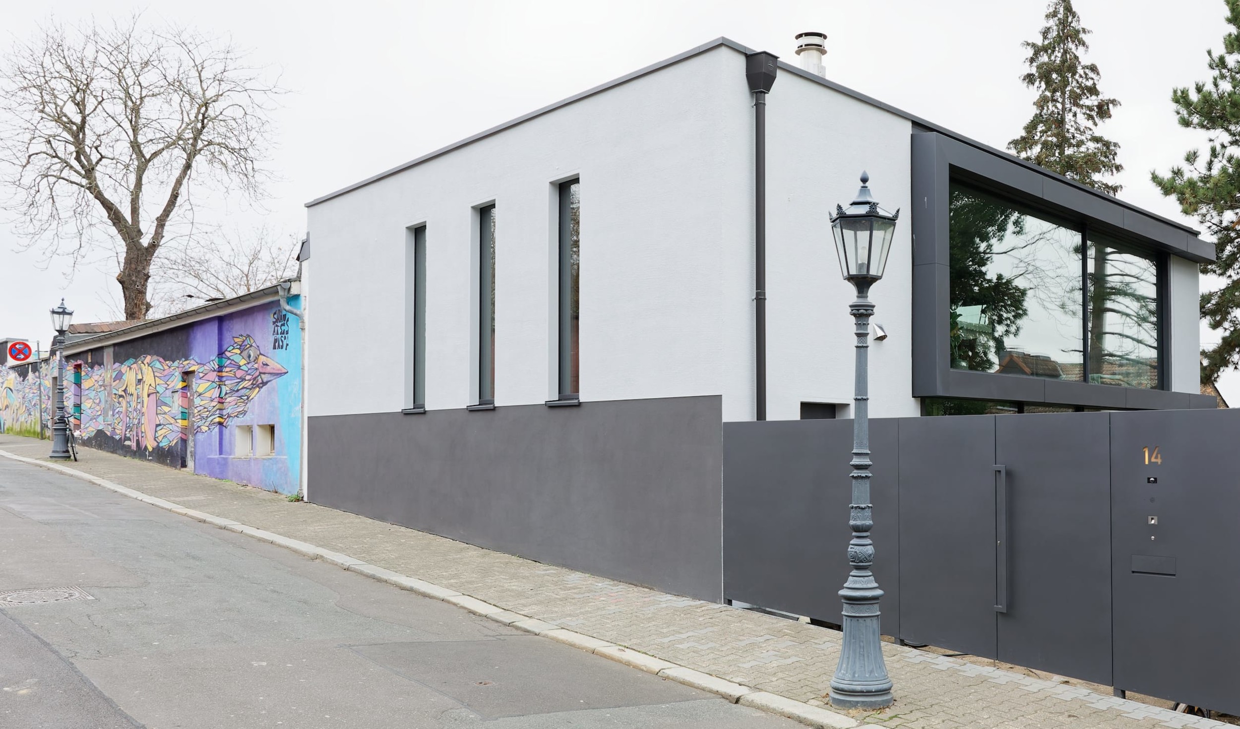 Kleines aber feines Detail: optisch verbinden sich Fassade und Tor zu einem stimmigen Gesamtbild.